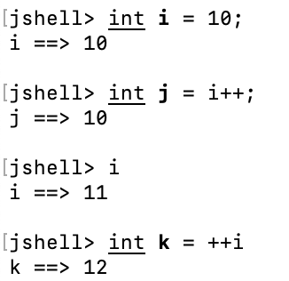 - j = i++에서, i의 값이 증가하기 전 값이 입력된다