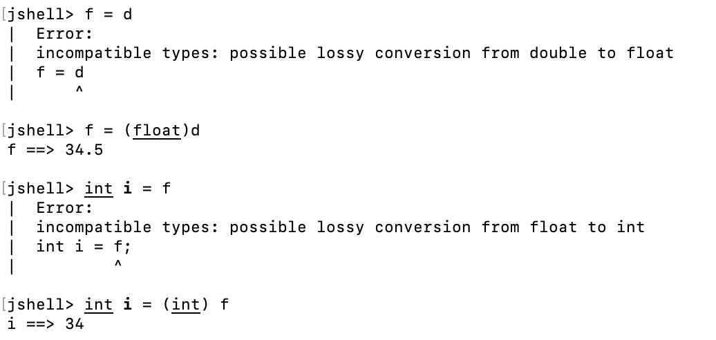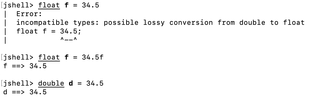 - jshell에서 각 자료형의 가장 큰 값, 작은 값, 사이즈, 비트수를 알 수 있다
