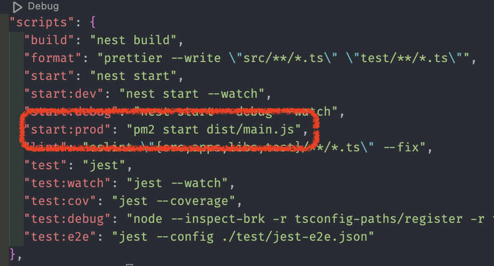 - package.json을 열어 scripts의 start:prod 를 "pm2 start dist/main.js" 로 바꿔줌