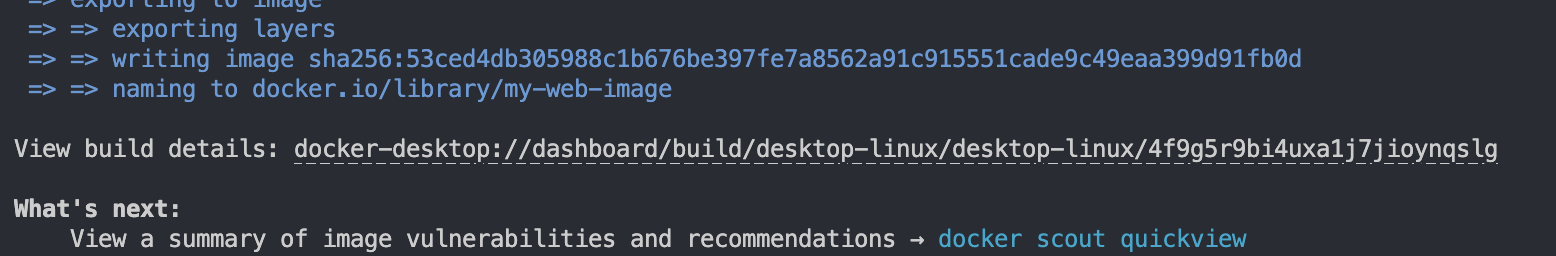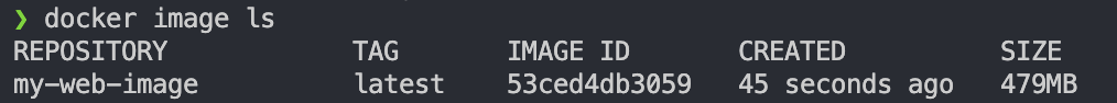 - my-web-image라는 이름으로 이미지를 생성하기 위해 아래 명령어를 입력한다