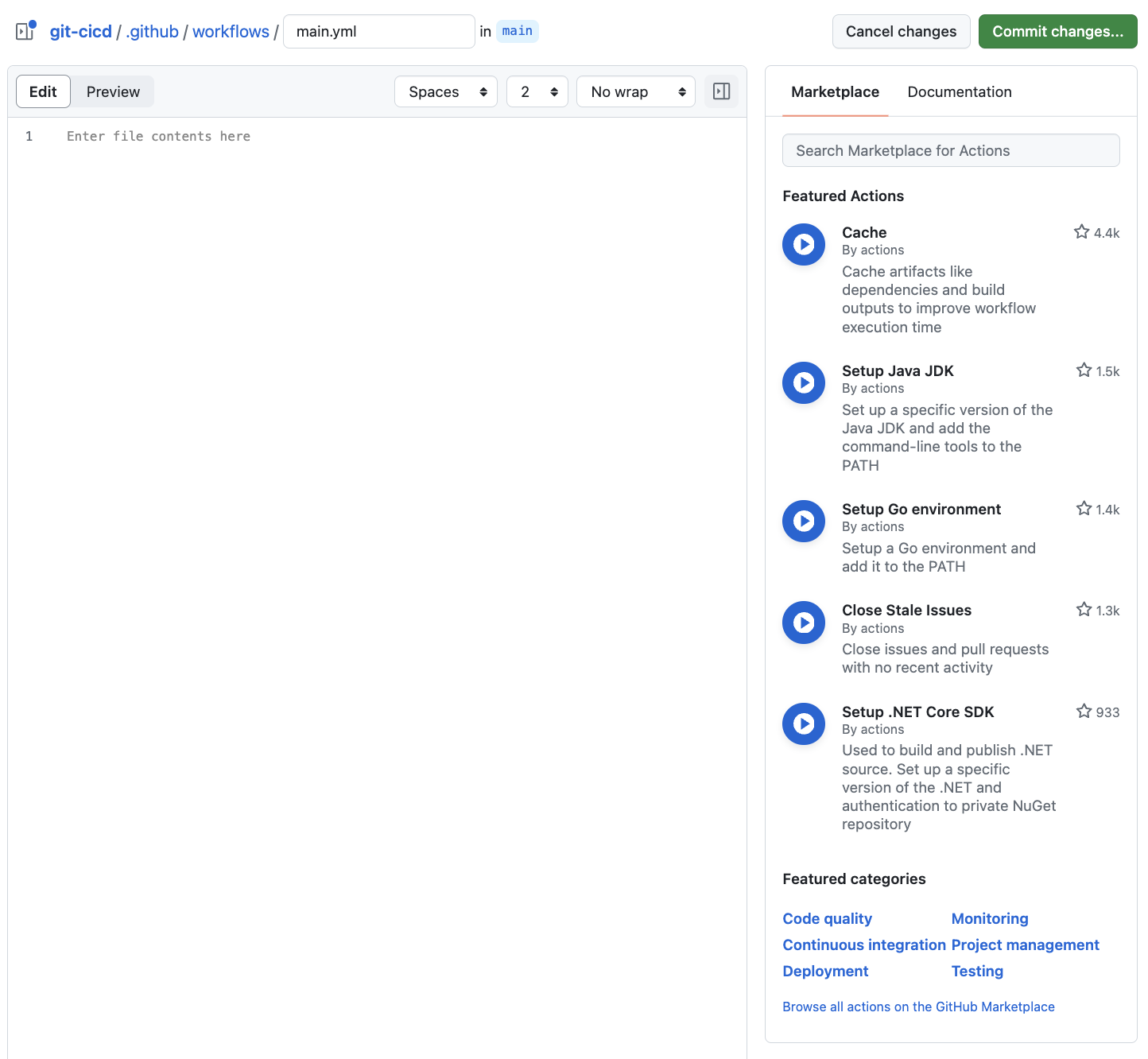 - 리포지토리에 따라 적절한 환경을 추천해주기도 하고 필요한 환경을 검색해서 갖다 쓸 수도 있다