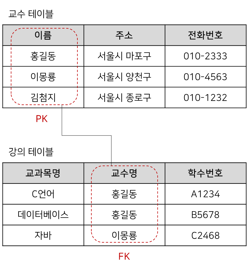 - 릴레이션1의 FK = 릴레이션2의 기본키의 도메인