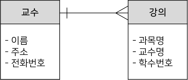 - 엔터티에 관한 데이터를 릴레이션 하나에 담아서 관리