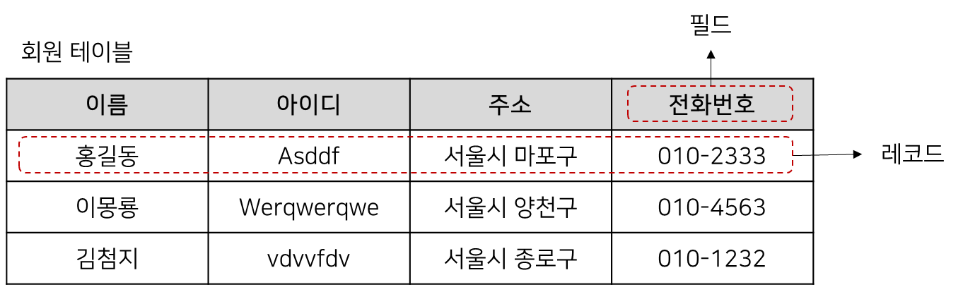 → 레코드가 쌓여 테이블이 되고, 테이블이 쌓여 데이터베이스가 됨