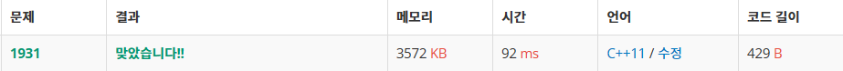 2. 회의의 시작 시간과 끝나는 시간을 vector에 pair로 끝나는 시간, 시작하는 시간 순으로 저장한다. (끝나는 시간을 기준으로 오름차순 정렬하면, 끝나는 시간이 가장 빠른 회의부터 차례로 진행할 수 있음)